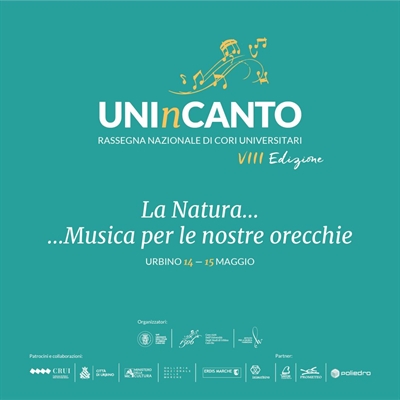 Il 14 e 15 maggio 2022 si terrà ad Urbino l’VIIIa edizione di “UNInCANTO”, rassegna nazionale di cori universitari, organizzata come ogni dal Coro 1506 dell’Università degli Studi di Urbino. Il titolo è: “La Natura…Musica per le nostre orecchie”. L’iniziativa, nata nel 2014, prosegue con entusiasmo nell’intento di promuovere momenti di incontro e scambio tra cori di diverse realtà territoriali italiane. Quest’anno parteciperanno i cori di Urbino, Firenze, Modena-Reggio Emilia, Napoli, Potenza, Reggio Calabria, Udine. Nella giornata di sabato, la manifestazione si aprirà alle 15:30 con i saluti delle autorità accademiche e dei maestri dei cori. Seguirà la lectio – concerto del M° Giovanni Bietti, compositore, pianista, musicologo e divulgatore musicale. Nella serata, in Piazza Duca Federico, si terrà la competizione goliardica ‘La Feluca d’oro’. Domenica 15 maggio, in mattinata, si terranno nel centro storico dei ‘concerti itineranti’, che consentiranno di far conoscere e ammirare le bellezze del patrimonio artistico della città ducale. Al concerto finale, nel pomeriggio di domenica, presso il cortile del Collegio Raffaello, verranno realizzate delle rappresentazioni artistiche figurative tramite l’ormai solida collaborazione con l’Istituto Superiore delle Industrie Artistiche (ISIA) di Urbino.